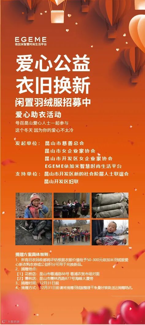 EGEME依加米第二届羽绒节圆满结束,为这个冬天送去了阵阵暖意。“赠人玫瑰,手有余香”,有爱就有路,有爱就有希望,为了支持暖冬计划,EGEME依加米每年12月都会满爱而来,为贫困地区捐助衣物。