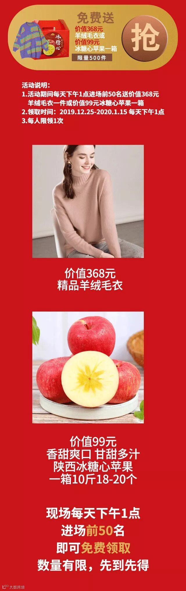 (价值269的羊绒毛衫/10斤装苹果二选一)