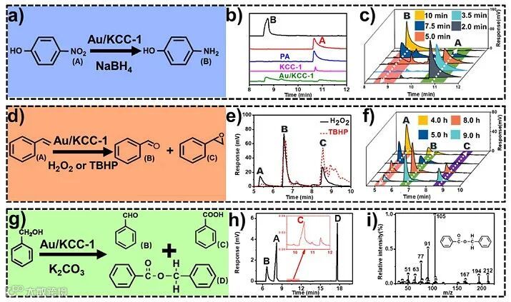 图3. Au/KCC-1涂层原位催化反应并萃取反应物和产物的色谱图