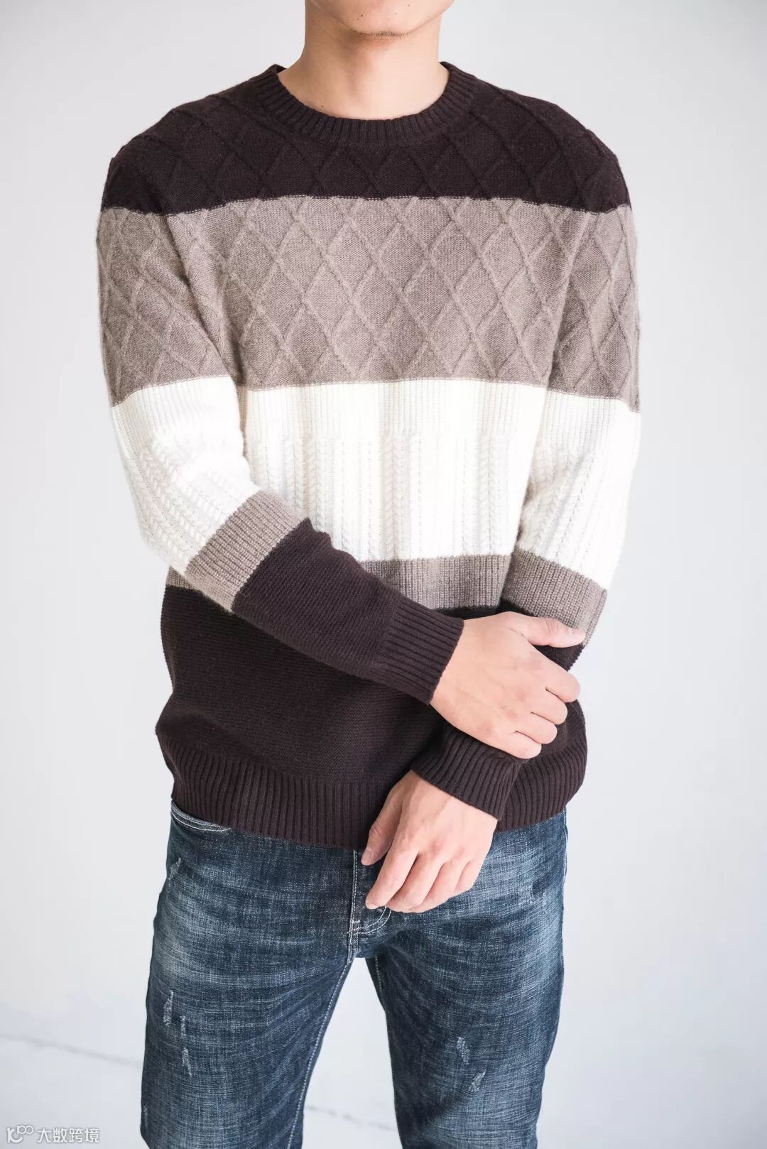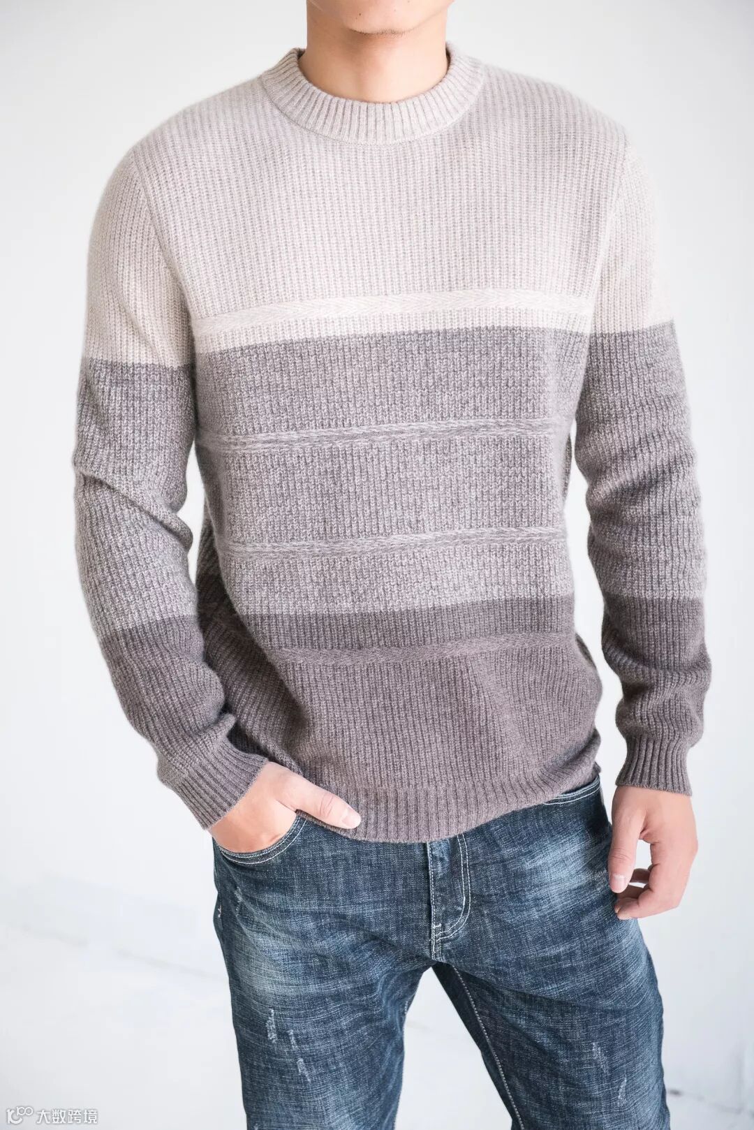 羊绒圆领夹色男套衫 ¥1698