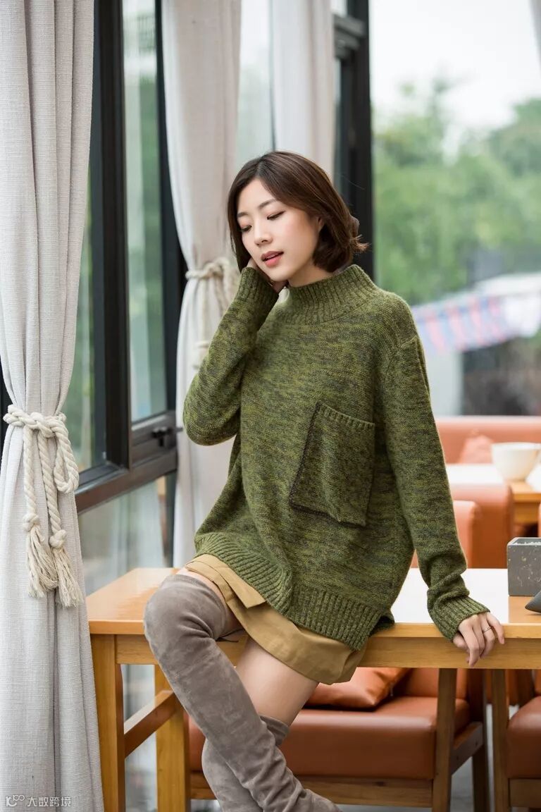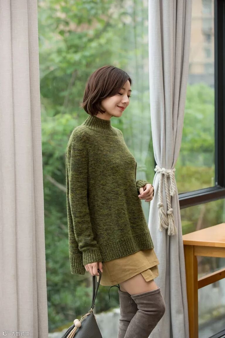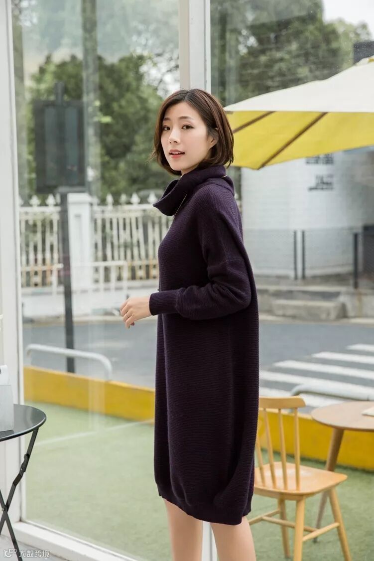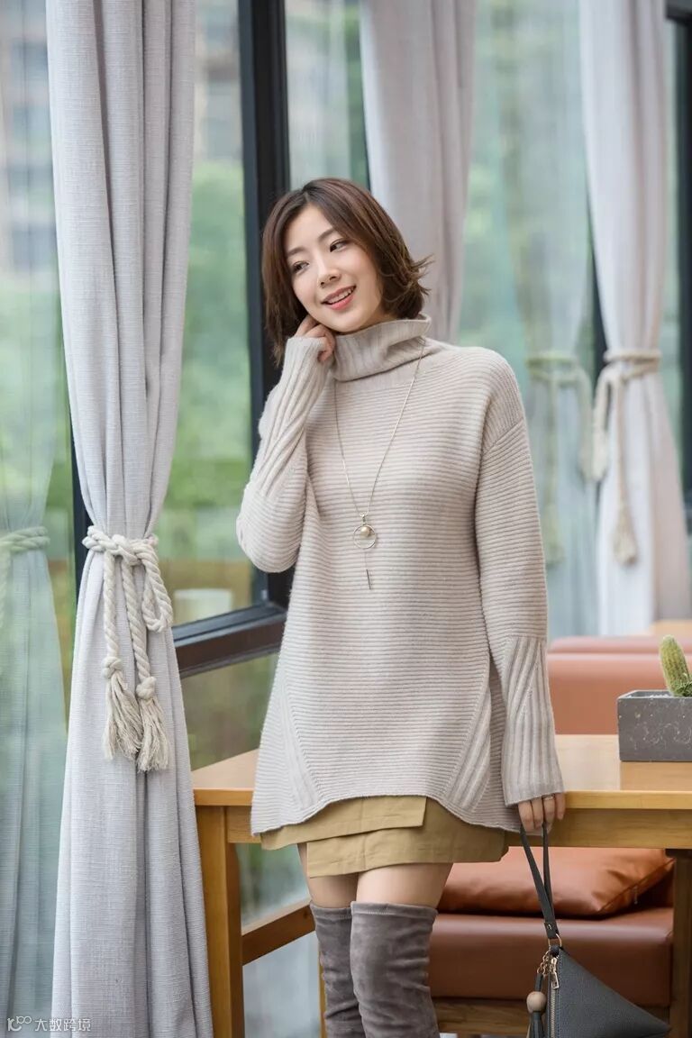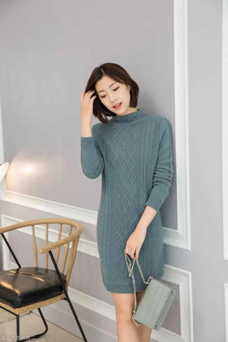 半高领中长款羊绒衫