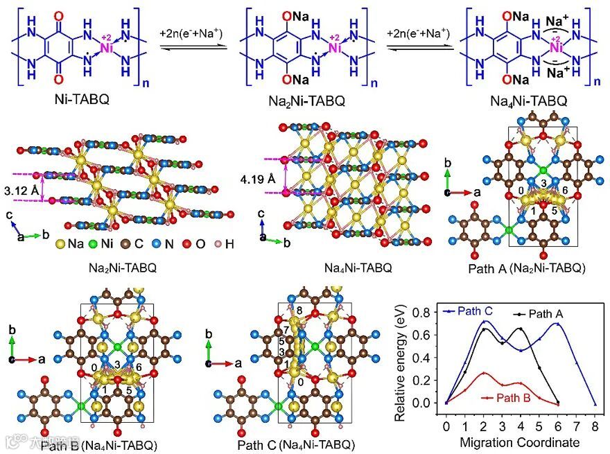 图2. Ni-TABQ的储钠机理和Na+扩散路径分析。图片来源:Angew. Chem. Int. Ed.