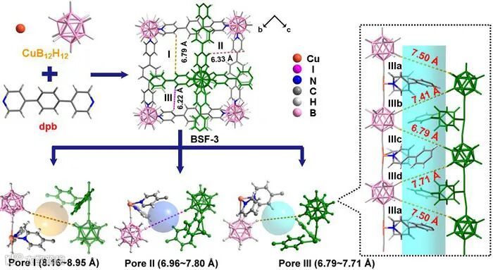 图3. 硼笼阴离子杂化超分子金属框架材料BSF-3的结构