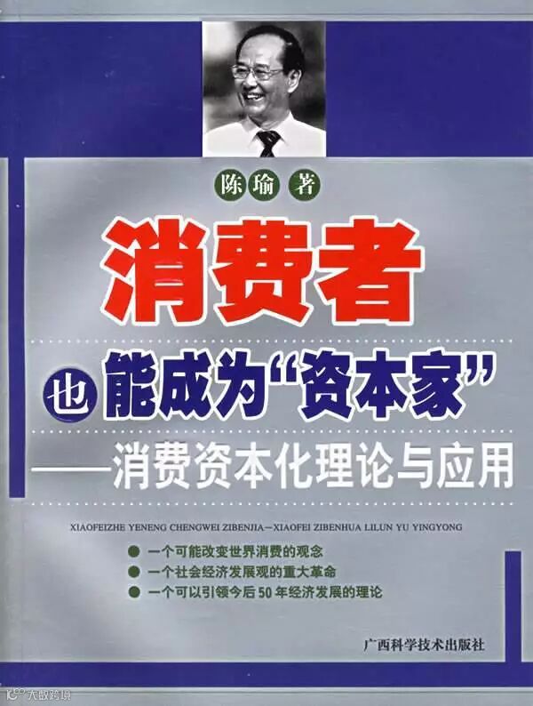 你知道吗—《消费者也能成为资本家》!此书作者—陈瑜教授,他提出的“消费资本化理论”的中心意思是说,消费者在购买企业的商品之后,企业应把消费者的消费视同是对企业的投资,并按一定的时间间隔,把该企业利润的一定比例返还给消费者。这意味着,消费者在消费的同时,实际成为一个投资者,而消费则质变为资本,使消费和投资有机结合。