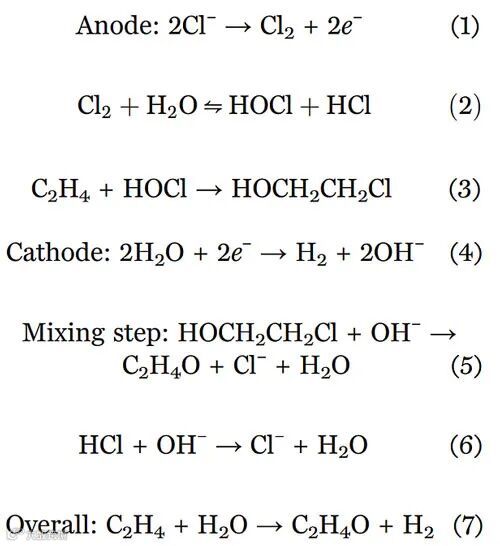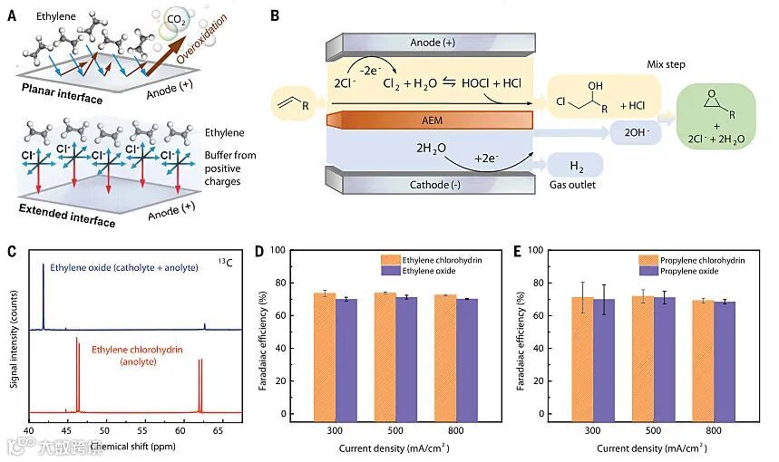 图3. 氯离子介导的电化学合成环氧乙烷方程式。图片来源:Science