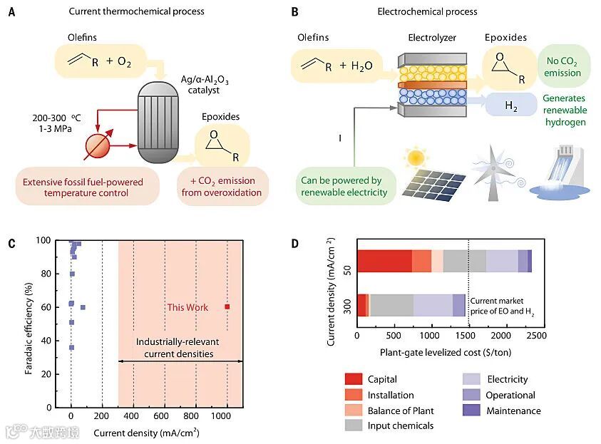 图1. 基于可再生能源电化学合成环氧化物。图片来源:Science