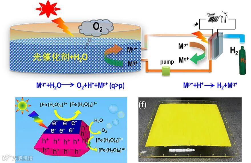 “氢农场”策略,是借鉴自然光合作用Z-机制将光系统II和光系统I在空间上分离以及光反应和暗反应在空间上分离的原理,将分解水反应中的水氧化反应与质子还原反应在空间上分离,避免了氢气和氧气的逆反应、规避了产物氢气和氧分离的问题,水氧化反应器开放无需密封,原理上解决了大规模应用的技术瓶颈。“氢农场”策略类似于农场大规模种植庄稼,即大面积播种利用植物的光合作用储存并收集太阳能,待庄稼成熟后集中收割粮食(储存的太阳能),故称之为“氢农场”策略。实现“氢农场”策略需要解决两个关键问题,一是如何实现高效水氧化光催化过程,二是如何抑制纳米光催化剂表面生成的氧化态和还原态储能介质之间的反应(即逆反应)。