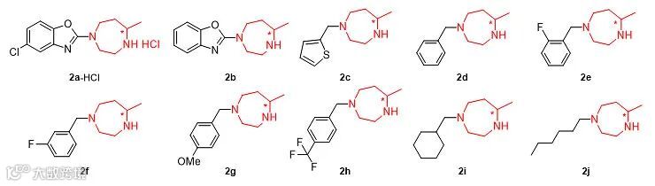 随后利用该突变体实现了苏沃雷生关键中间体的合成(收率81%,>99% ee)。并利用立体选择性互补的两个酶合成了一系列具有不同结构特征的手性1,4-二氮䓬化合物,为该类具有重要生理活性的手性结构模块的精准构建提供了一种有效的生物催化方法。