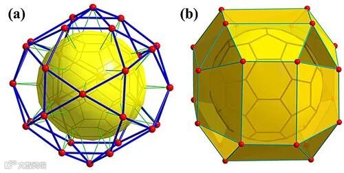 从配位化学的角度来看,C60分子是一种具有30个配位点(30个C=C键,或30对π电子)的球形配体,最多可与30个过渡金属原子M以η2方式配位,形成Icosidodecahedron型三十二面体核壳结构C60@M30 (图1a)。这种理想的完美结构能否制备出来呢?近日,汕头大学詹顺泽副教授和暨南大学李丹教授团队首次在富勒烯配合物的合成中引入溶剂热方法,在成功地组装出纳米土星结构的C60/C70-咪唑铜(I)超分子配合物的基础上(Chem. Commun., 2020, 56, 3325),制备出了最接近完美配位的C60@Cu24分子(图1b),给C60穿上了“铜衣”,实现了迄今为止最接近C60分子饱和配位数的配合物。