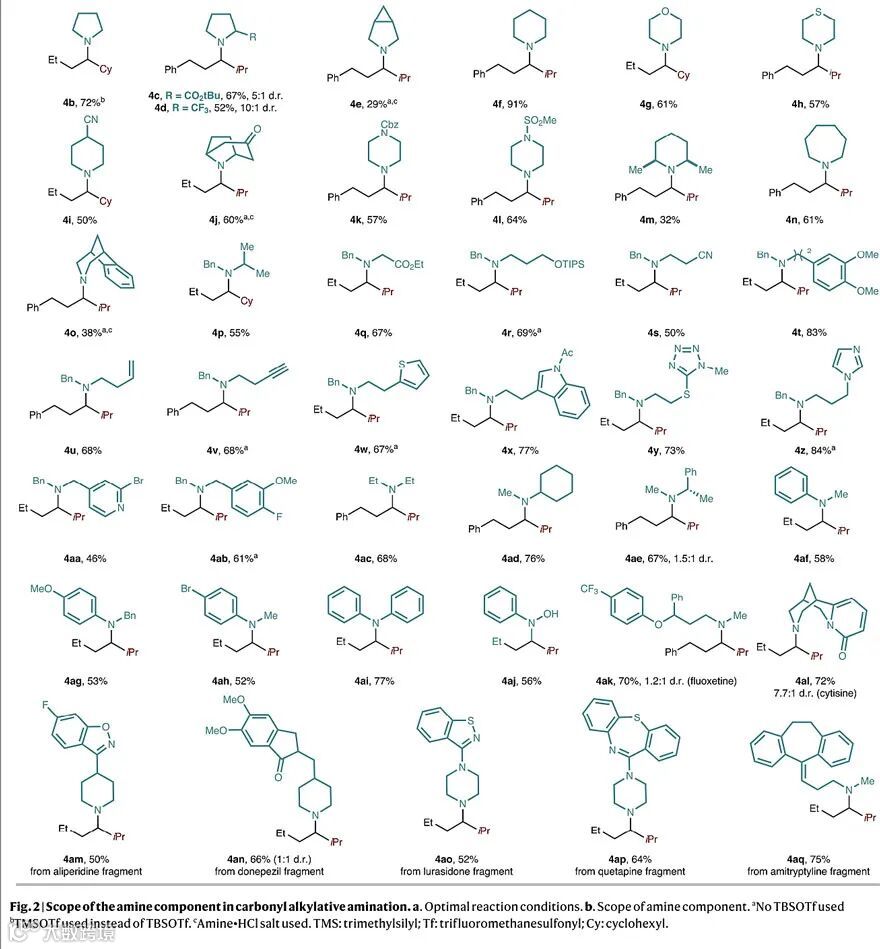 通过CAA一步制备复杂叔烷基胺衍生物。图片来源:Nature