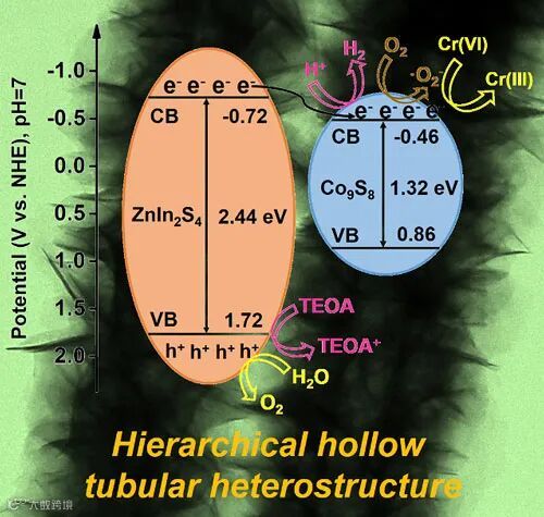 图2. 分级Co9S8/ZnIn2S4中空管状催化材料的光催化机理示意图
