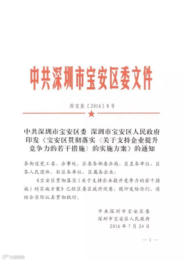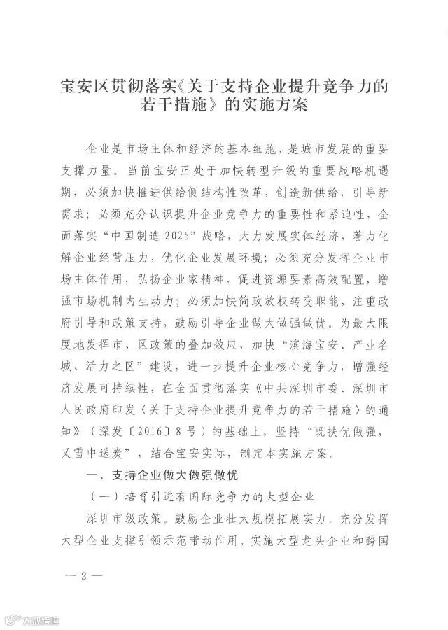 宝安区2016年关于支持企业提升竞争力的若干措施(数亿扶持资金来袭)