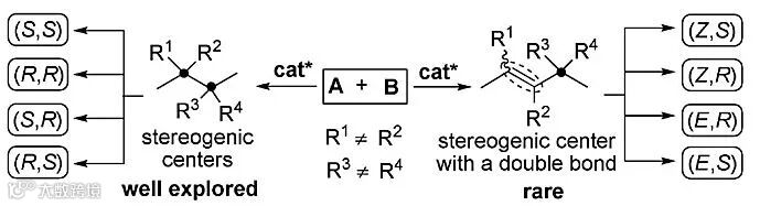 Scheme 1. 含不同立体元素分子的立体多样性合成策略