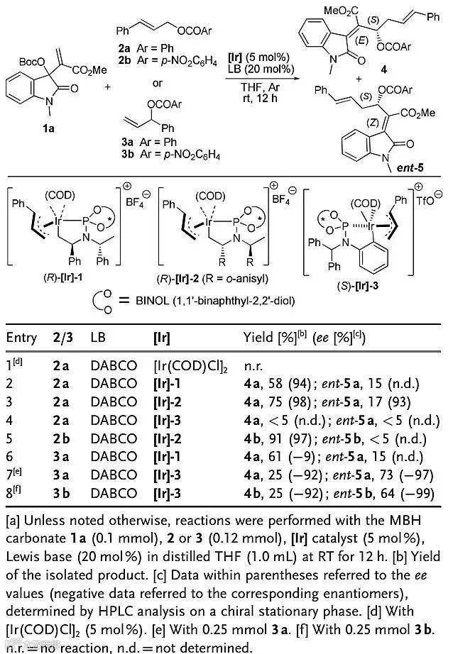 Table 1. MBH碳酸酯烯丙醇酯的反应条件优化