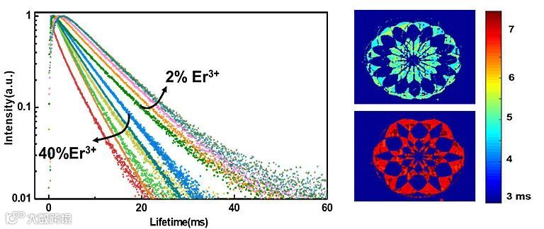 光学防伪通常使用发光材料来编码和揭示隐藏的图案,在打击商标、文件安全、食品工业和公共安全中的欺诈方面起着至关重要的作用。但是,这种技术通常是通过颜色编码的方式并在可见光范围内实现的,目前为止还未实现高阶防伪以及穿透不透明散射层的可视化防伪。与颜色相似,寿命是发光材料的固有属性,独立于激发光功率和发光强度等因素。稀土元素的发光寿命长达数百微秒甚至达到毫秒级别,比背景荧光的荧光寿命(通常为几纳秒)长三到四个数量级。因此,利用时间门成像技术可以轻松消除背景干扰,从而实现高对比度的图案识别。短波红外(SWIR)光(900-1700 nm)具有高穿透力的优点,可以穿透雾气、烟雾以及各种不透明的材料(油漆,食物和植物),实现远距离成像和观测。因而短波红外成像技术广泛应用于舰载、车载军事观测、农产品筛选、作物成长监测、太阳能电池板检测等领域。