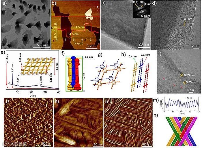 近日,中国科学院化学研究所李玉良院士和李勇军研究员(通讯作者)报道了一种“两步法”策略制备石墨炔纳米带。如图1所示的逆合成分析,首先进行单体中心位置的乙炔基的聚合以保证石墨炔纳米带的一维结构。然后在液-液界面的辅助下进行相邻侧链上的乙炔基的分子内偶联,其中位于边缘的大体积的3,5-二叔丁基苯基所提供的位阻可进一步减少分子间的偶联。通过上述策略成功制备了首例化学合成的石墨炔纳米带(图1),其由苯环和丁二炔基构成的菱形组成,具备均一的宽度(~4 nm)和达几百纳米的长度。作者还研究了石墨炔纳米带的组装,其通过π-π相互作用可编织成纳米织物状薄膜,可用于构建锂离子电池中锂电极的保护膜,可以有效抑制锂支晶的形成,提高锂离子电池的稳定性。