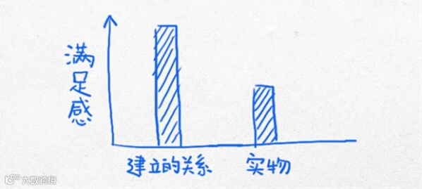 和你得到的实物相比,你可以从和别人建立的关系中获得更多的满足。在我们的现实生活中,我们总是错误地追求“物质”所带来的快感,就如我常说的,钱绝对不是我们人生的追求,它只不过是满足我们需求的工具而已,可是很多人只看了工具,却没有想清楚,努力获得这个工具用来干什么?在现实生活中往往会出现两种情况: