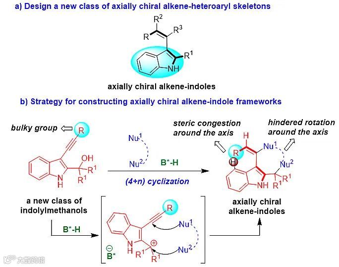图2. 新型轴手性烯烃-吲哚骨架的设计及其构建策略