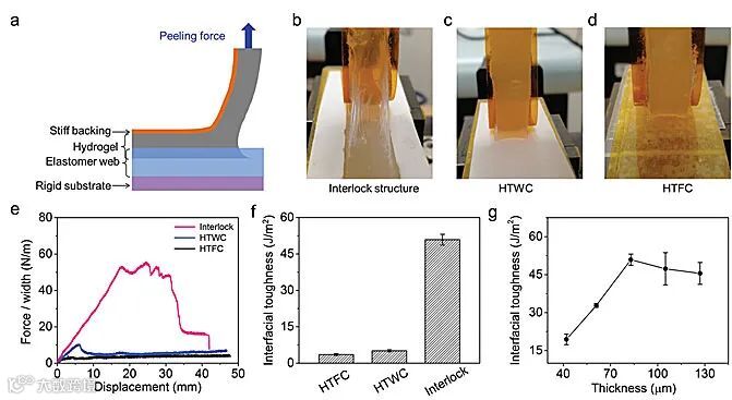 新型电子皮肤界面粘附强度测试。图片来源:Adv. Funct. Mater.