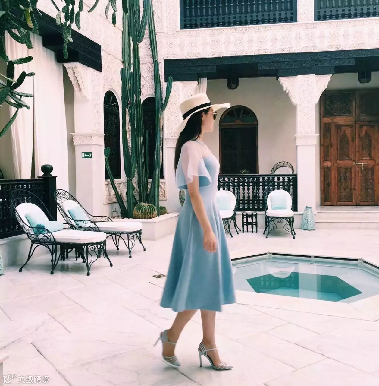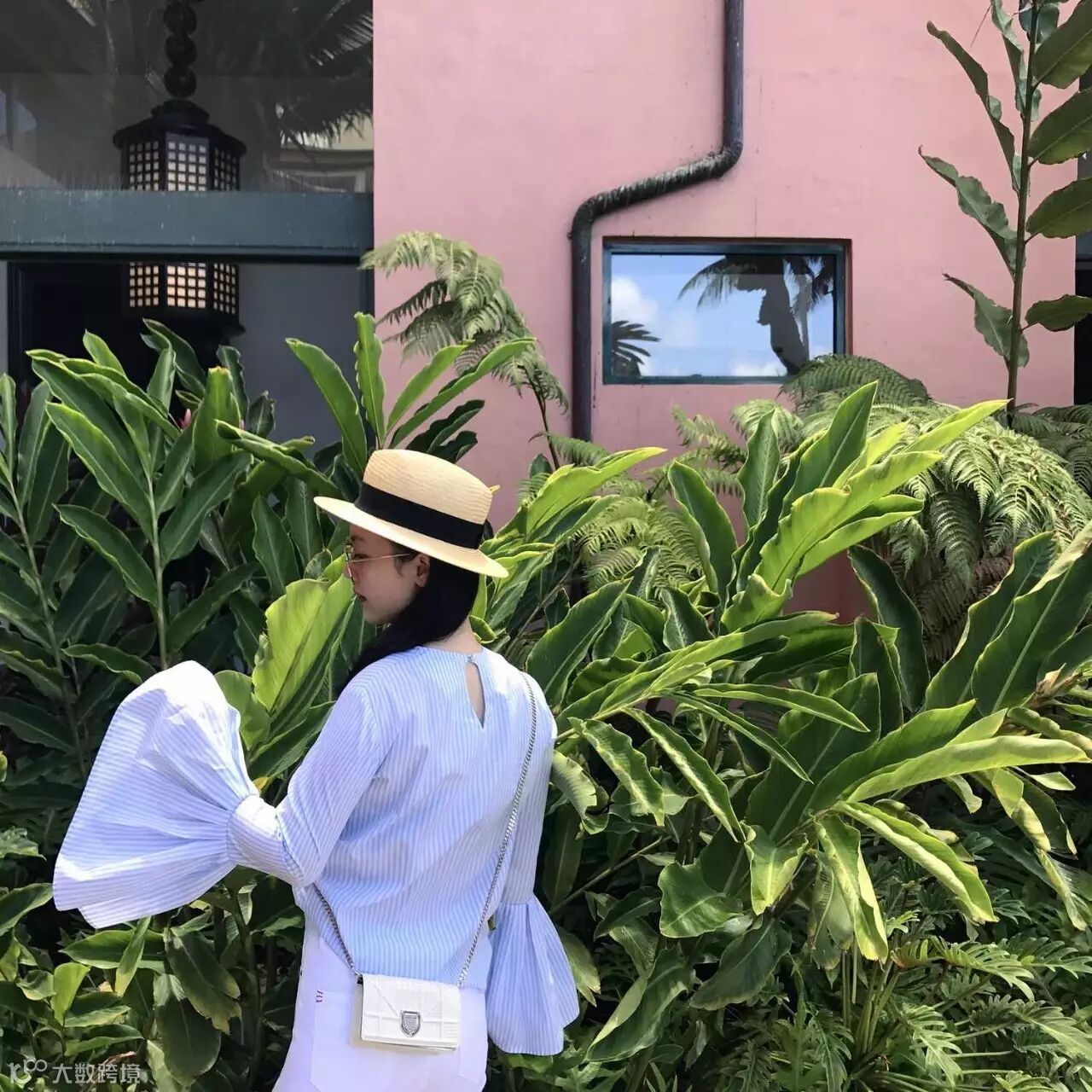 蓝色条纹和夏日阳光太和谐了材质轻又透气!大喇叭袖设计无敌显瘦又时髦!
