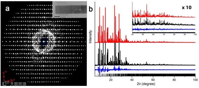 图2. 三维电子衍射以及X射线粉末衍射表征PST-5晶体结构。