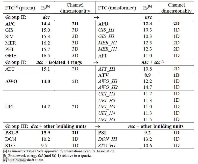 表1. 三维-三维拓扑转变在不同磷铝分子筛中的应用。