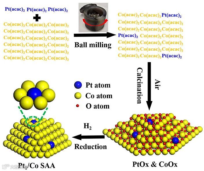 图1. 球磨法制备Pt1/Co单原子合金催化剂过程示意图