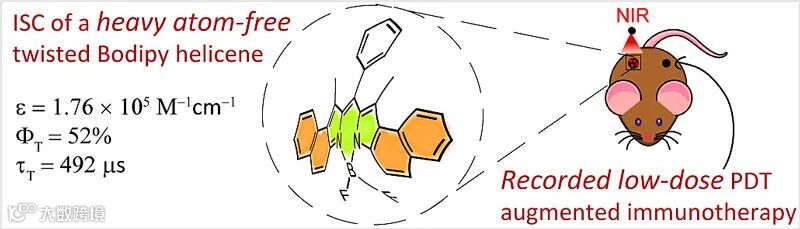 三重态光敏剂的系间窜越 (ISC) 是光化学的重要研究内容,其相关研究对三重态光敏剂在光动力治疗 (PDT)、光催化、上转换等领域的应用有着重要的意义。大多数有机分子不具备ISC的能力,通常需要依靠重原子效应来增强ISC,但重原子效应会导致三重态寿命大大缩短,影响光敏剂在PDT、光催化、氧传感等领域的应用效果。尽管近年来国内外科学家在无重原子三重态光敏剂领域进行了广泛的探索,但依然存在种类少、机理不明确、普适性不强、吸收波长短、ISC效率低等问题。