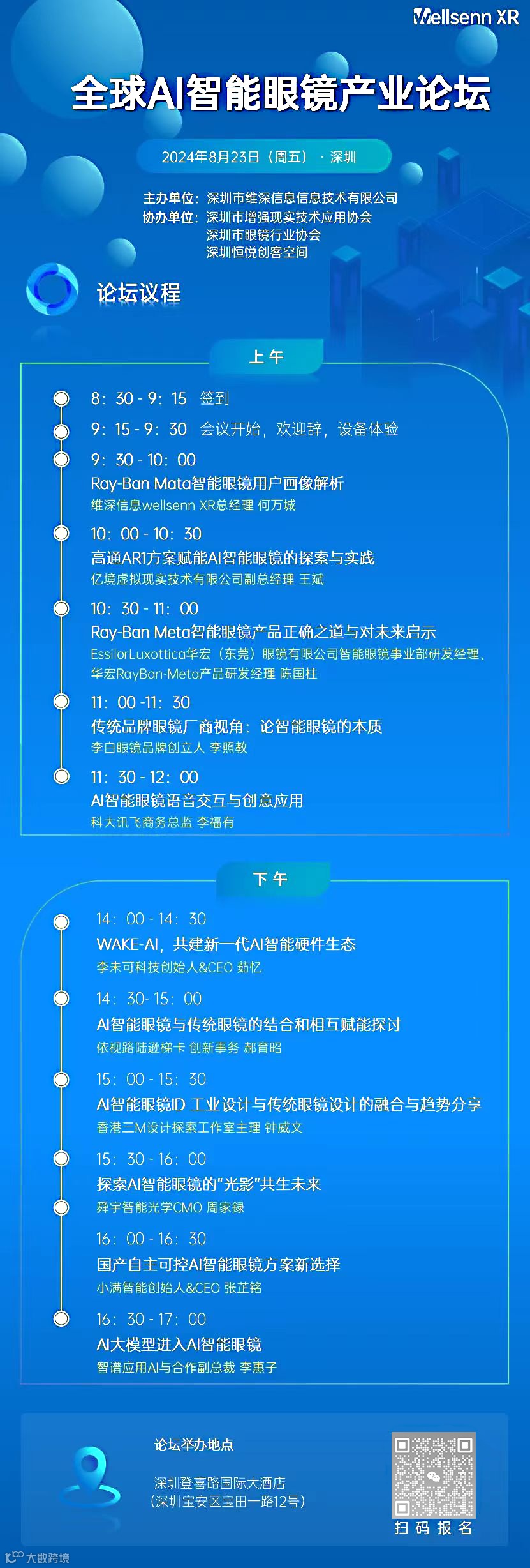 2024年8月23日深圳举办,由维深信息主办,深圳市增强现实技术应用协会、深圳市眼镜行业协会协办的《全球AI智能眼镜高峰论坛暨投融资闭门对接会》议题已确定。以下为论坛企业演讲议题和资料,排名不分先后,不代表演讲顺序,仅供大家了解论坛演讲议题及演讲嘉宾。