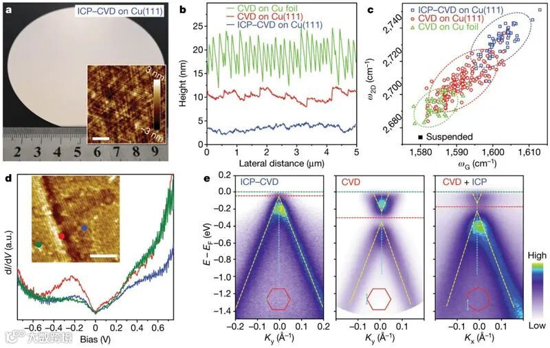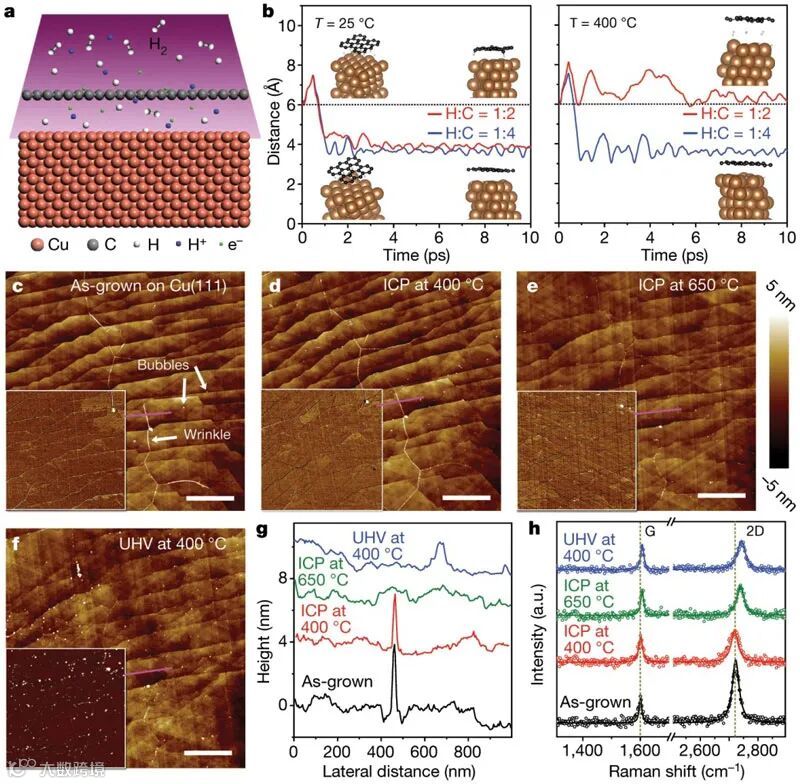 铜表面生长石墨烯与氢等离子体处理。图片来源:Nature