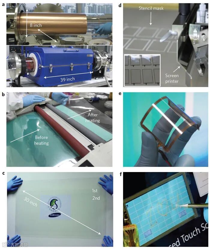 CVD法卷对卷制备30英寸石墨烯薄膜。图片来源:Nat. Nanotech. [1]