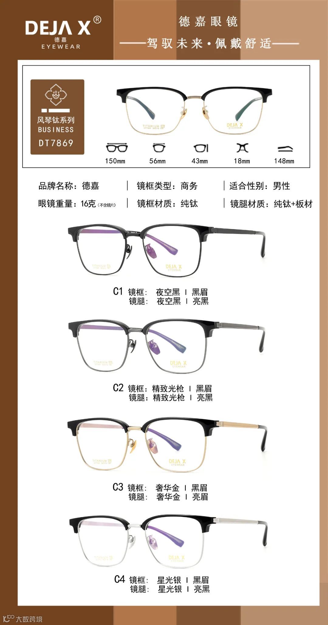 深圳德嘉眼镜有限公司是深圳市眼镜行业协会的会员单位。德嘉眼镜从设计之初到成品出货一直坚持:优秀设计、精工材料、科学结构、佩戴舒适的理念贯穿产品始终。以弘扬民族品牌,打造优质产品为宗旨。以职场商务人士和时尚年轻一代为服务对象。延承亚洲人体工程学、美学风格。打造最佳商务时尚气质之单品。简约而不简单,成熟而不庸俗。德嘉注重把产品的细节做得更加极致,致力于做国人佩戴舒适高端平价眼镜而不懈努力。