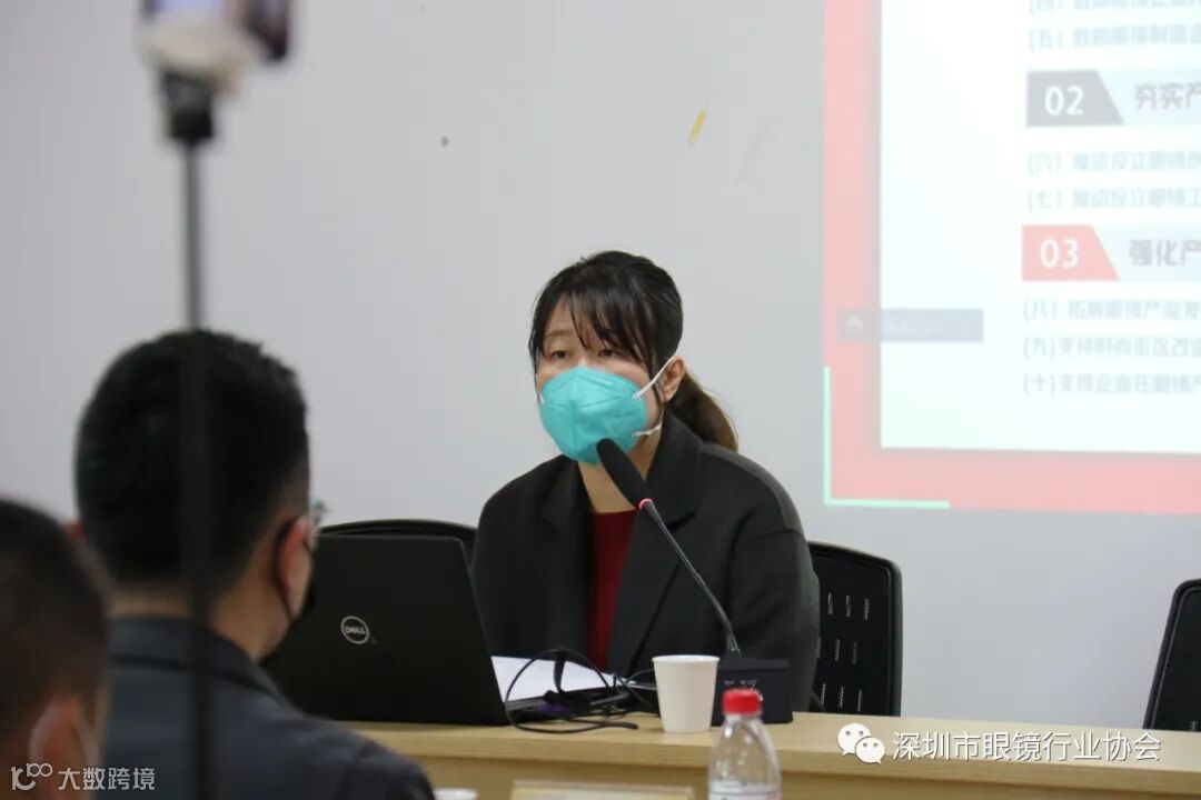 会议采用“线上+线下”同步进行,集美新材料、普莱斯眼镜、慧明眼镜等重点眼镜企业现场参加会议,会议根据企业提出的问题进行答疑。