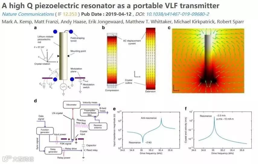 Nature Communications 发表了一篇题为“高Q值的压电谐振器用于便携式超低频的信号发射机”的论文,其中,利用Comsol的电磁模块和固体力学模块,研究了压电系统的阻抗等物理性质。