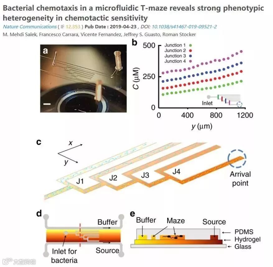 Nature Communications 又发表了一篇“微流体T型迷宫中的细菌趋化性揭示了趋化敏感性的强表型异质性”的论文,作者利用Comsol中的流体模块及物质运输模块,建立对流扩散模型,研究了细菌细菌的浓度分布及输运特征。