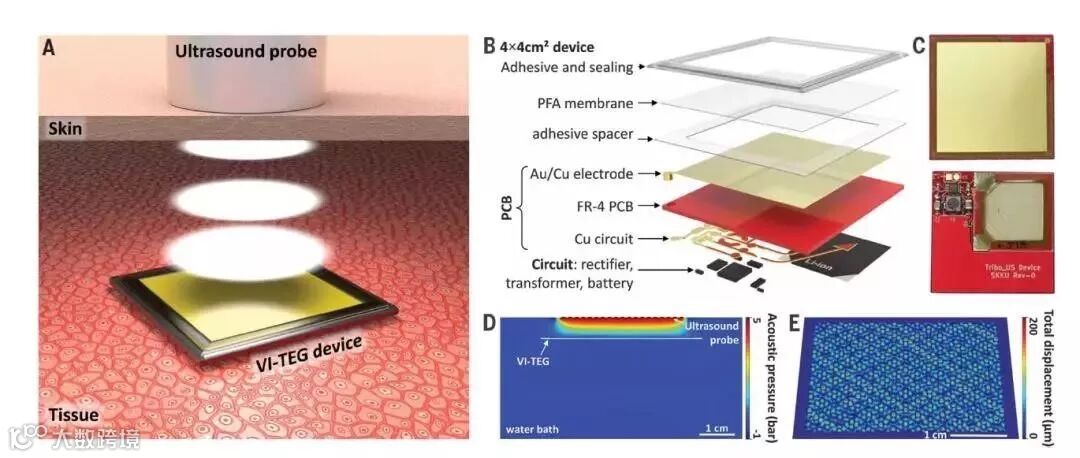 Science 正刊发表了一篇生物医学相关论文,题为“使用电容摩擦电技术的经皮超声能量收集器件”。作者使用超声波通过皮肤来提供机械能,并制备了一种能够有效收获这种能量的轻薄可植入式的振动摩擦发电机,提供了一种可为医疗植入物供电的技术。论文中,作者使用COMSOL声学模块和固体力学模块模拟了超声传递的声压分布,以及器件在声压下的震动。