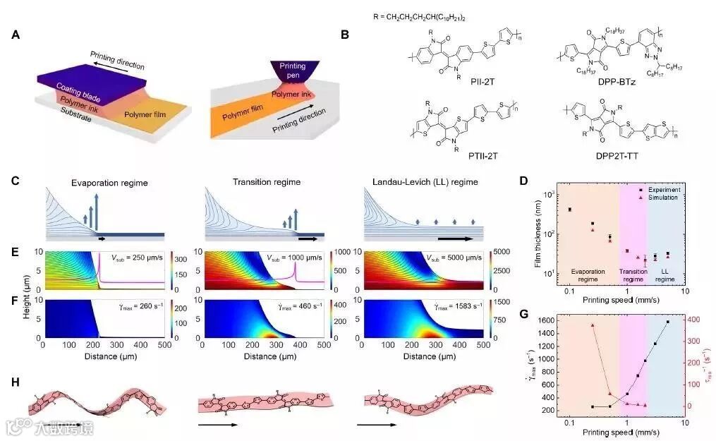 Science Advances 发表了一篇印刷功能器件相关论文,题为“通过印刷流动调节共轭聚合物的构象,组装和电荷传输性质”。作者证明印刷流动能够使最初扭曲的聚合物主链平面化以显着增加共轭长度,而使电荷载流子迁移率增加四倍。论文中,作者借用COMSOL的流体及物质扩散模块,模拟了打印过程中液体蒸发的流场分布,进而研究对有机分子构象的影响。