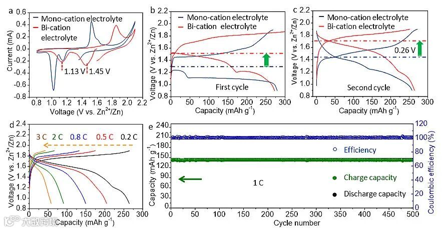 英文原题:Bi-Cation Electrolyte for a 1.7 V Aqueous Zn Ion Battery