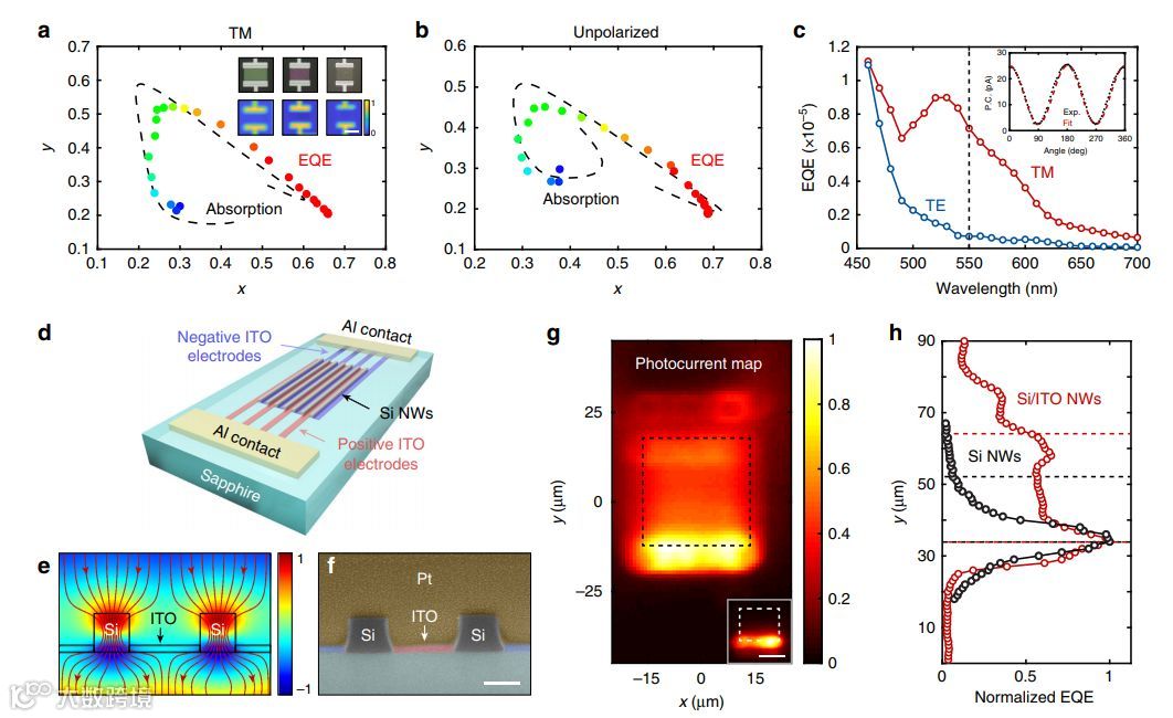 图3 | 颜色和偏振检测以及均匀的光电流生成