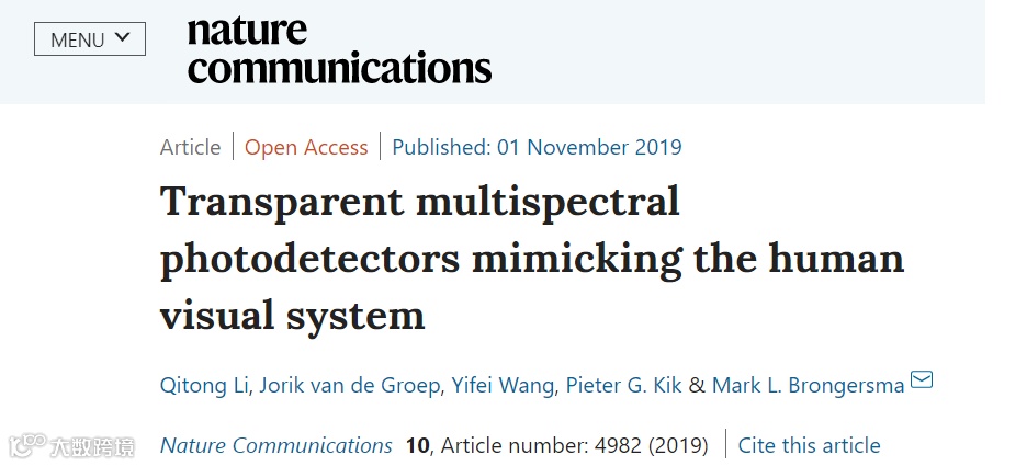 最近,一篇发表在Nature Communications 上的文章,通过模仿人类的视觉系统,使用高折射率材料的半导体纳米线,实现了透明,多光谱的光电探测性能。