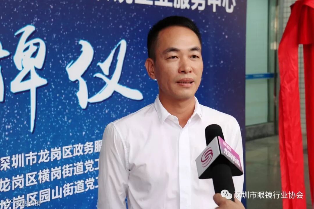 周玮(龙岗区政务服务数据管理局副局长):一直以来,横岗、园山街道在优化营商环境、提升政务服务工作方面做出了很多卓有成效的工作。此次服务中心的成立,是在围绕深圳建设中国特色社会主义先行示范区的大环境下,政务服务更优质服务百姓上迈出的坚实一步,也是区特色品牌行业服务上的又一创举。感谢街道各部门及深圳市眼镜行业协会的大力支持,今后区政务服务数据管理局将会对眼镜企业服务中心软硬件方面提供更大力度支持。