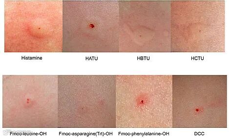 不同化学物质的皮肤敏感性试验(组胺作为阳性对照)。图片来源:J. Org. Chem. [1]