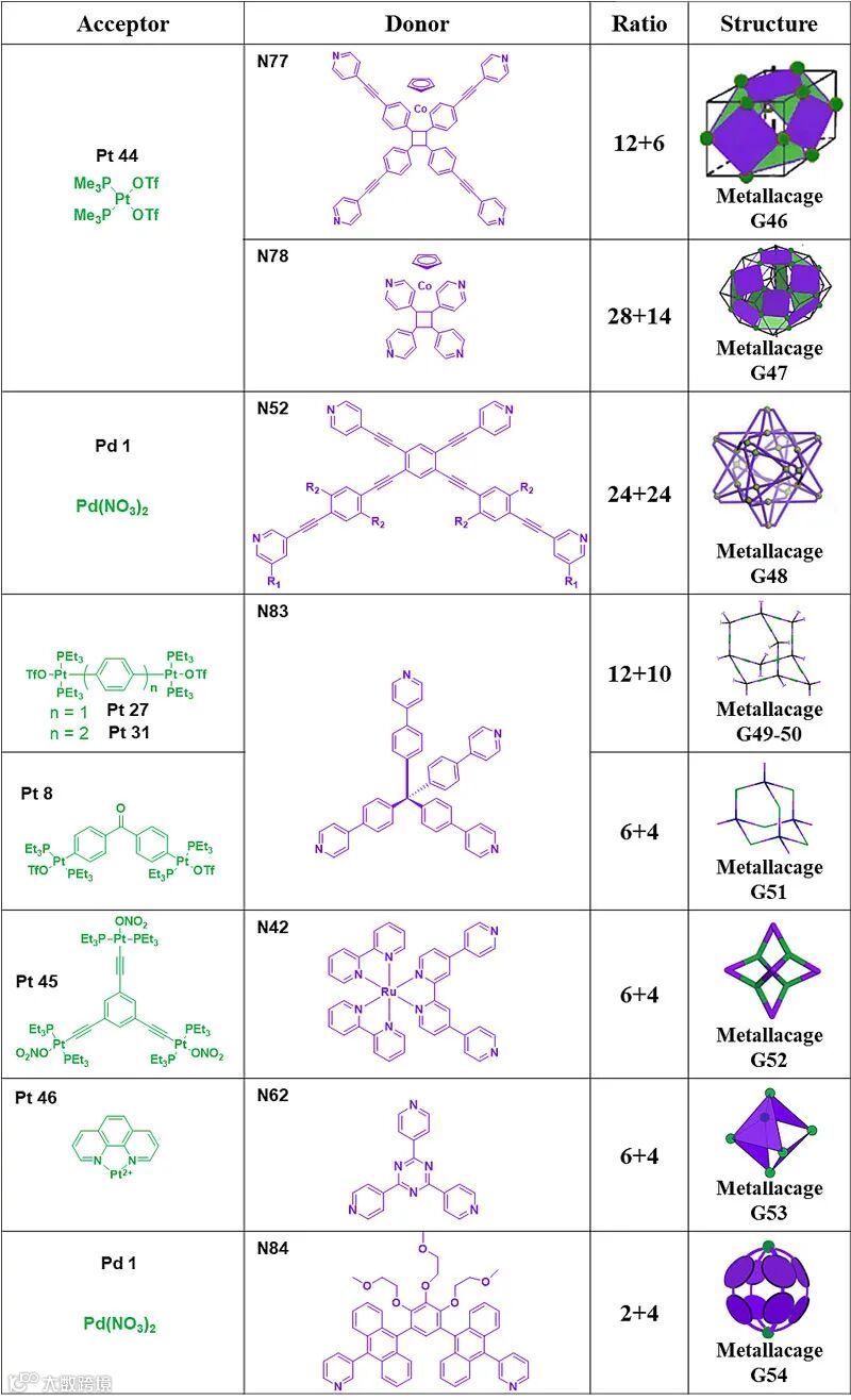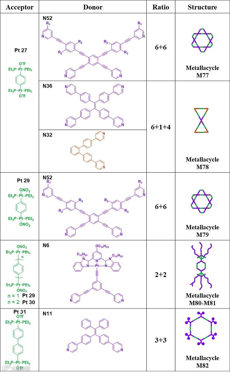 超分子作用在精细复杂功能化分子组装体中起着举足轻重的作用。自然界中存在多种多样的功能超分子结构:从生物膜到细胞器,从单细胞生物到多细胞生物。借助于非共价键结合形成的多层次有序结构在植物界和动物界各自执行着特定的功能,贯穿于生命的初始、生长、发展以至于终结。受自然界的启发,研究者已经制备了各种基于超分子作用的新型材料体系。配位作用是最重要的超分子作用之一。通过选择合适的金属离子以及对组装体的分子设计,利用配位驱动自组装制备具有不同尺寸、形状和金属/配体比例的有机金属复合物,包括有机金属环和有机金属笼。