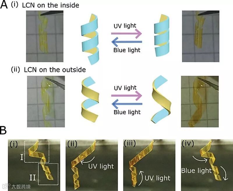 LCN-PET光致“螺旋”运动测试。图片来源:Angew. Chem. Int. Ed.