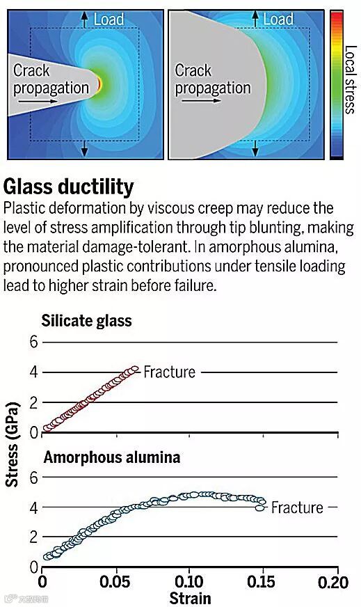 非晶态氧化铝的塑性应变及如何提高玻璃抗破坏能力。图片来源:Science [3]