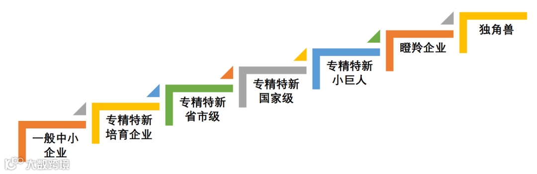 “专精特新”企业有较为严格的申报条件、筛选标准和梯次认定,国内对中小企业的政策支持已经形成明显的梯次,专精特新企业的梯次越高表明其硬科技特征越突出,相对更为优质,政策支持力度也会更大。目前中小企业梯次成长梯次如下: