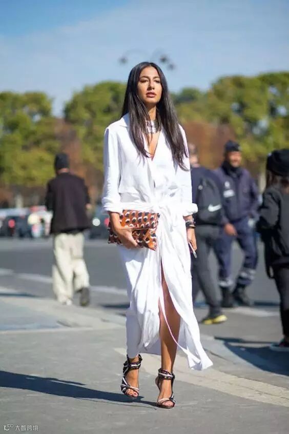 柔软的开叉衬衫裙+细高跟鞋 瞬间转换女王范儿