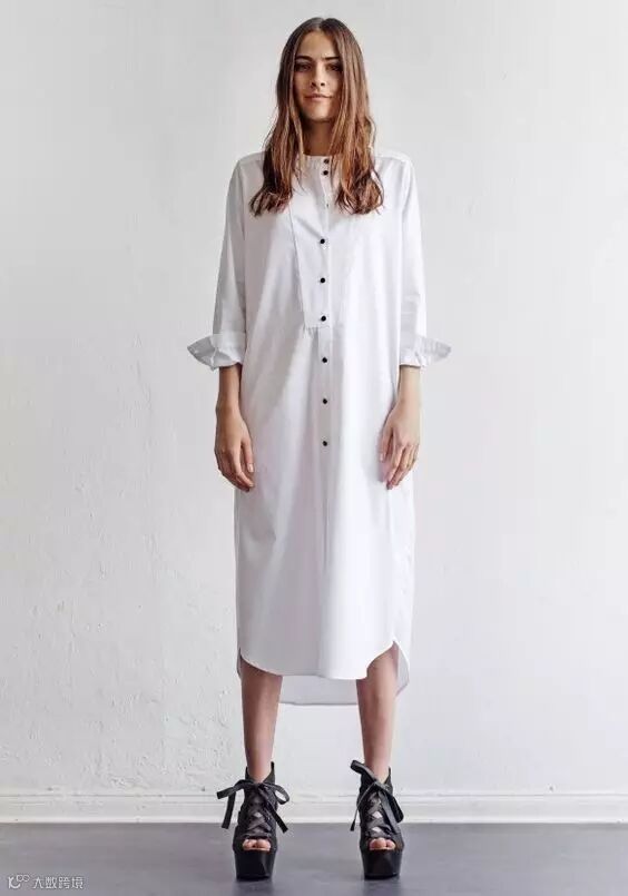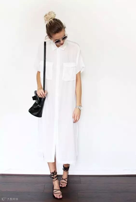 一身简约的白色衬衫裙纯白干净又清新