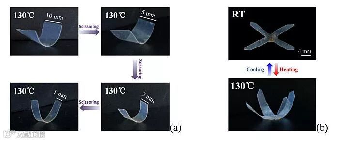 液晶弹性体在热、光、电、磁等外界刺激下能产生宏观的形变,在软体机器人、人工肌肉、微型操控器、可穿戴器件等方面具有重要的应用前景。液晶弹性体的形变依赖于液晶分子的取向,通常平行取向能获得较大形变。而垂直取向液晶弹性体的形变沿着厚度方向,导致形变量非常小,因此,通过垂直取向获得三维形状变化的液晶弹性体是一项具有挑战性的研究。