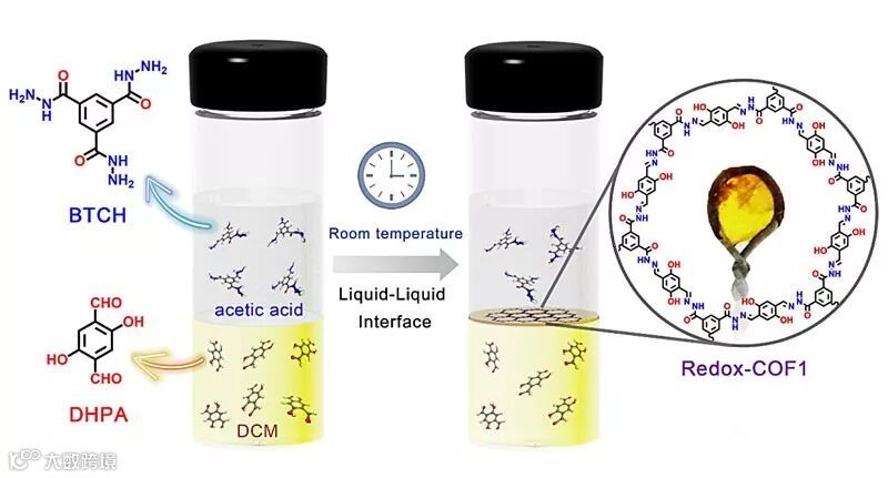 图1. 单体及Redox-COF1的结构及制备过程。